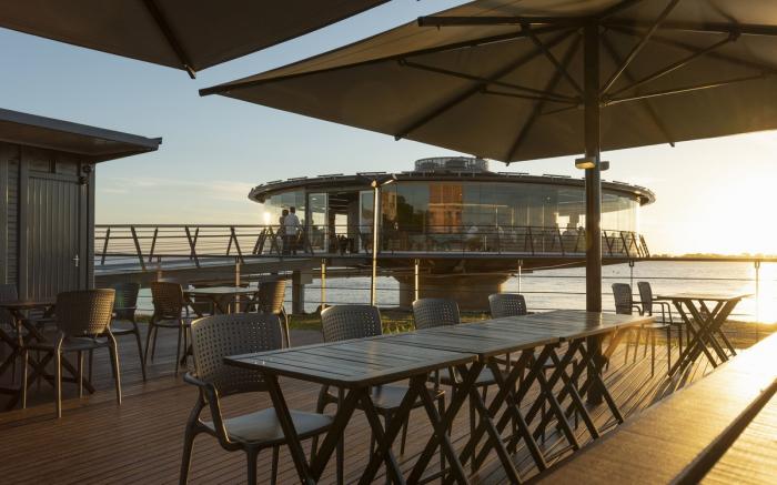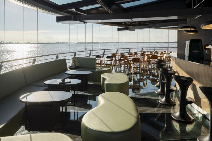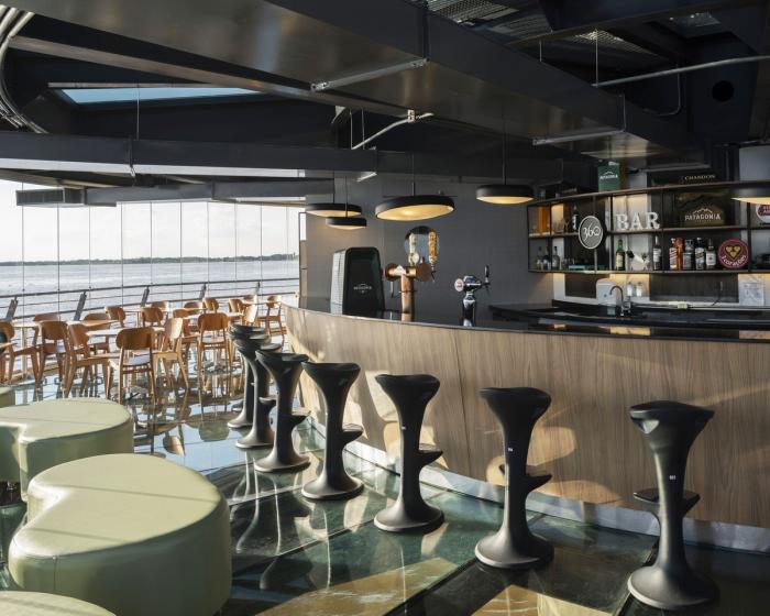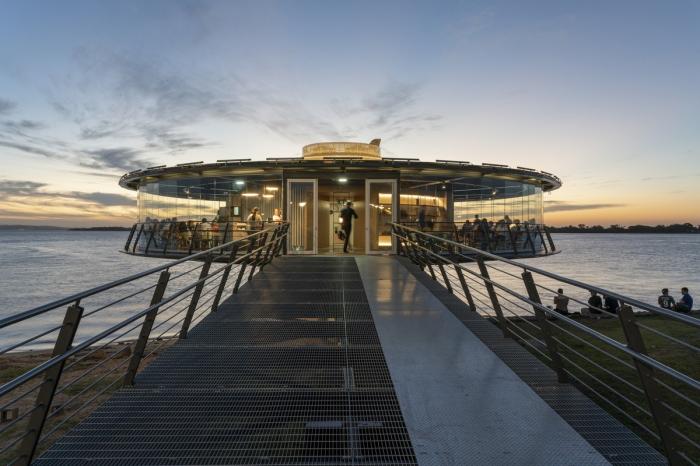 位于南巴西里奥格兰德苏尔州首府历史中心城的湖面上,波亚美食酒吧餐厅是一家独特的,由金属、玻璃和木材建造而成的360°全景餐厅酒吧综合体。建筑整体为圆棱柱体,勾勒出了20世纪30年代和40年代的工业建筑,其意图是制造一种近乎于“依偎” 在湖水中央的感受。建筑包括了通透的大空间,技术厨房与机房。