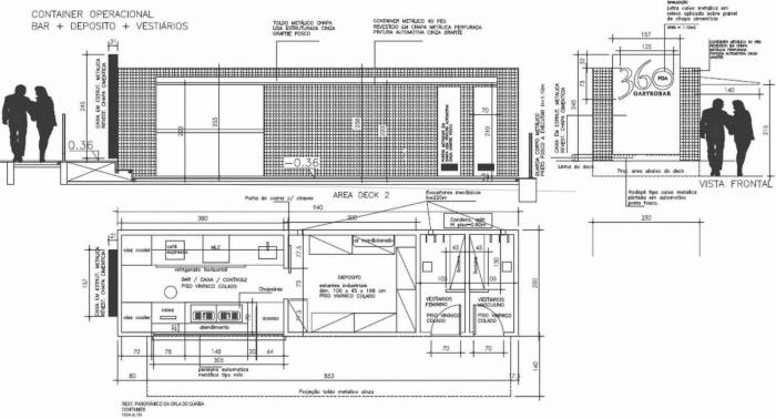 甲板形状的外部广场连接到主要的建筑元素,为使用者提供了观赏与享受湖泊日落美景的氛围,这也是阿雷格里港市民最喜欢的活动之一。外部区域配备了一个操作集装箱,其中有一个酒吧、一个仓库和工作人员的更衣室。