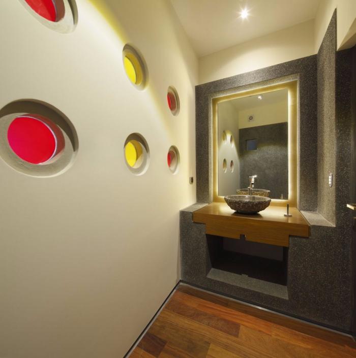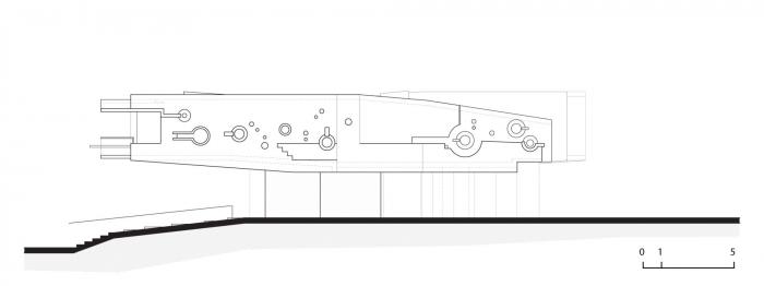 设计隐喻是:我们想象在场地上发现一块祖先留下的巨大的岩石,尚待被雕刻以容纳生活空间。