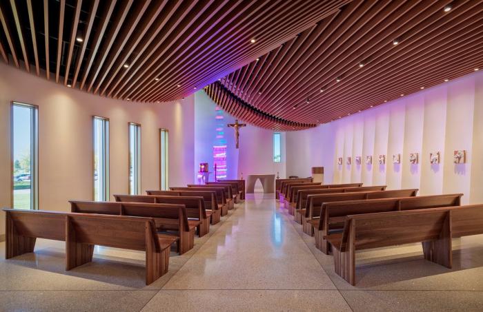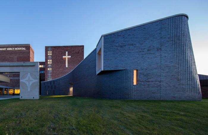建立一个充满精神性的社区是圣玛丽医院一直以来所秉持的核心使命。而医院园区内的第一栋建筑则是由Felician姐妹在1959年建立的,旨在于汽车行业迅猛发展的时期,为其所在的社区提供一份医疗健康保障。自此之后,该区域内的人口就呈现出日益增长的状态,并在人口分布和精神信仰上呈现出多元化的趋势。基于这段特殊历史的考量,建筑师在建筑功能中囊括了一个罗马天主教堂,一个忏悔室和一个穆斯林祈祷室。