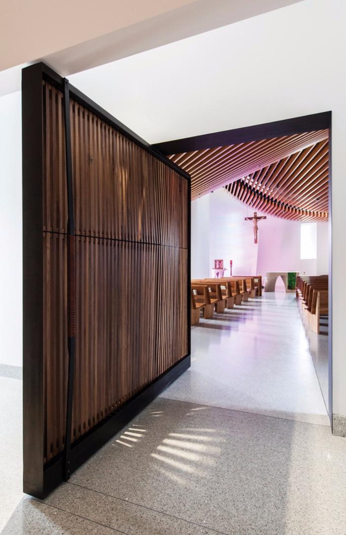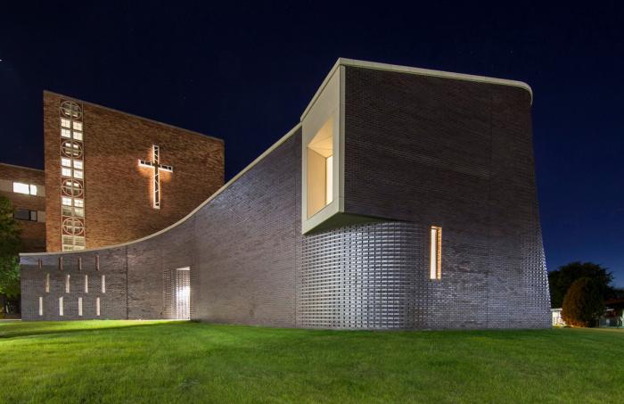 在教堂的外形设计上,建筑师试图探索砖石材料的潜力,以创造一种既触感平滑,又能实现多种功能用途,还能体现教堂整体精神信仰的设计手法。