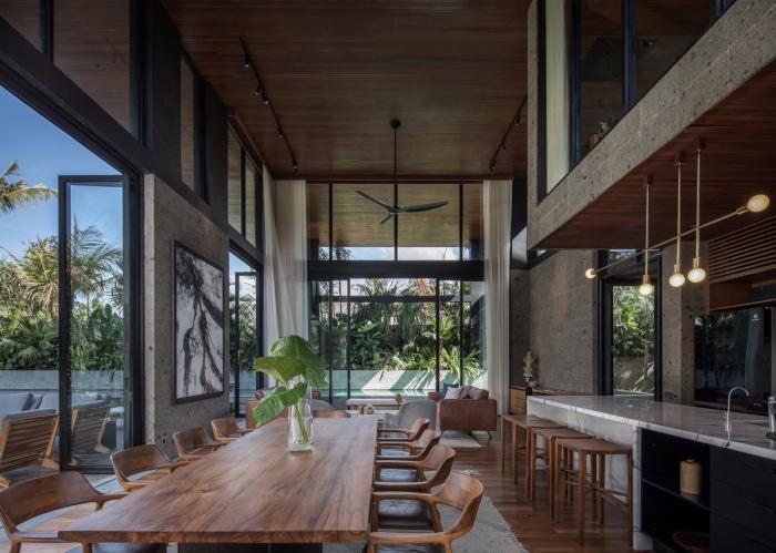 将巴厘岛美丽的自然风景延续至建筑内部是我们在设计过程中的主要信条之一。对于河之家,我们嵌入现有的地形,并将其作为总体特征以获得3D体验。