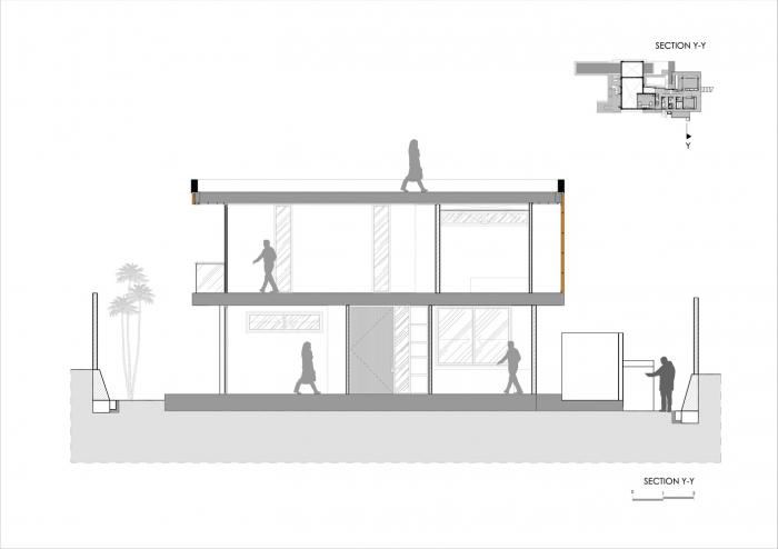 位于一层上方的卧室捕捉了椰子树上的日落景象。随着人们走入建筑上层,交通流线也贯穿在半室外空间中,带给人意料之外的视野和氛围。建筑顶部是一个巨大的屋顶花园,可通过巨大天窗覆盖下的中庭进入花园。