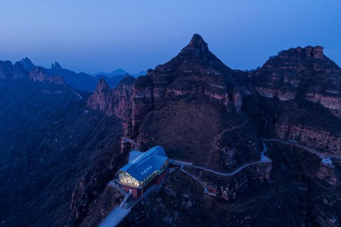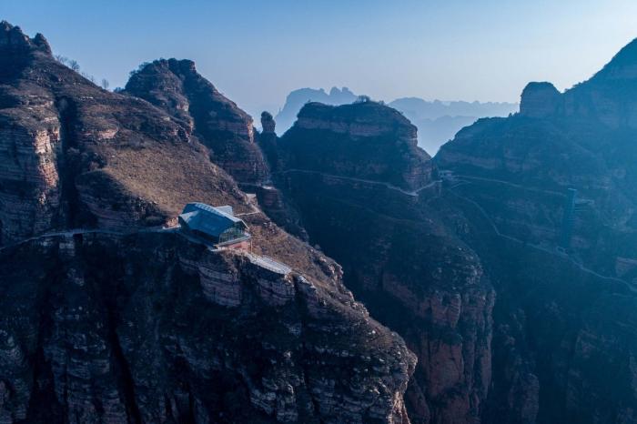项目位于华北平原和黄土高原的边界——太行山脉东部的东太行景区,依托当地独特壮观的红砂岩山脉景观。景区特色在于几乎全部路线均为悬崖高处的空中栈道,在此高度上穿行于奇峰怪石之间,是一种全新的视觉体验。
