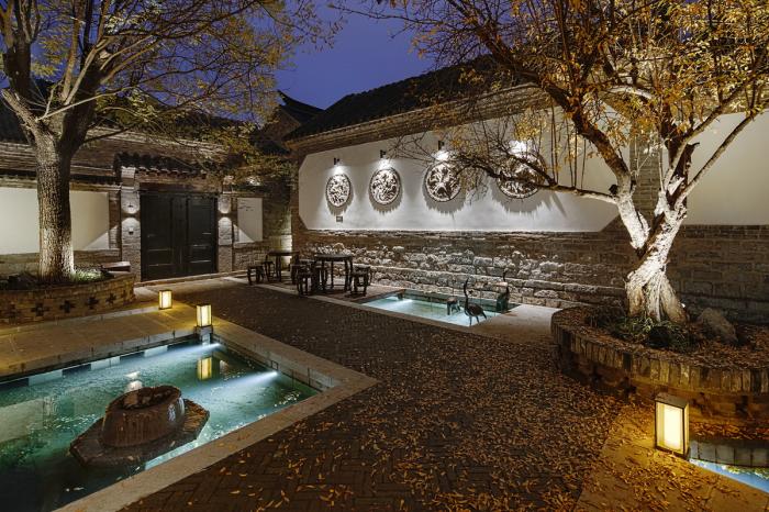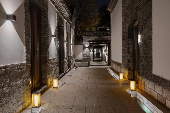 如何最大限度地保留原建筑的历史形态,丰富室内空间感受,成为了此次空间设计中的重点难点。改造后的古建群落、作为作为济南中心老城区的代表性精品酒店对外开放,共设有6个庭院,15间客房。