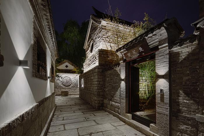 ▲ “雨山前”院落立面感官(原为清末官员私宅“三希堂”,通过照明构筑重点立面结构)