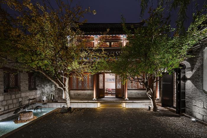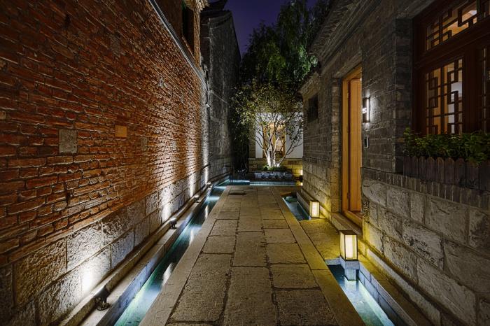 因项目原功能为百花洲片区中一部分古建景点,现场的照明与景观都作为“游客景点”的定位而设置,与酒店气质不符,设计各专业整合了建筑立面、景观水系、泛光照明,注入与酒店定位匹配的私密与格调氛围。