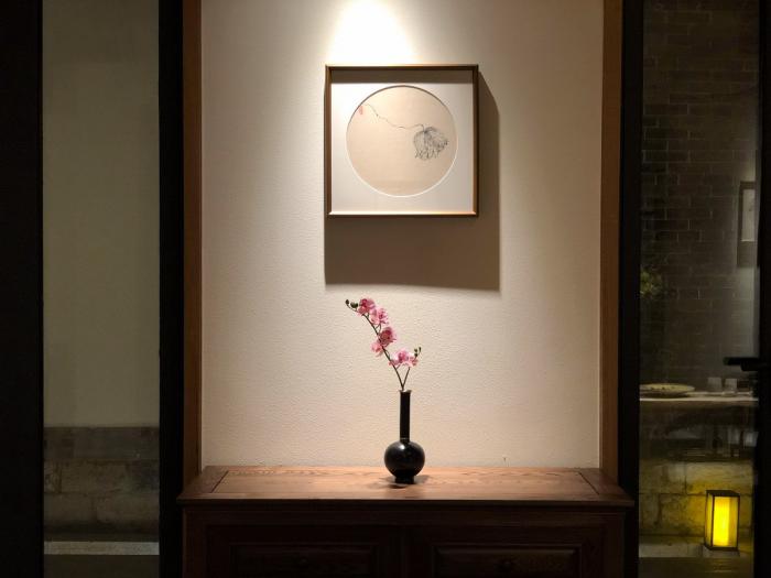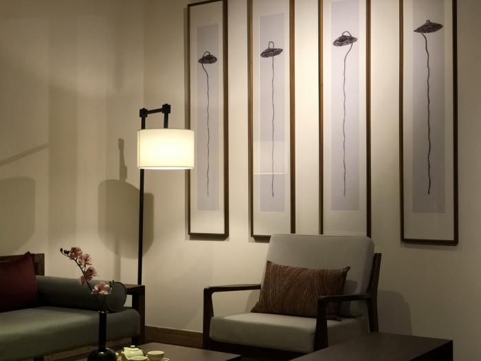 因传统建筑空间各有不同,在室内设计中,根据每个房间不同的特征,我们一共设计了5种基本房型,在保持原始建筑古朴纯粹的基础上,利用软装吊灯、摆品、挂画,意图将大明湖畔“莲叶何田田”的文化景象引入室内空间,与室外的景观达成呼应。