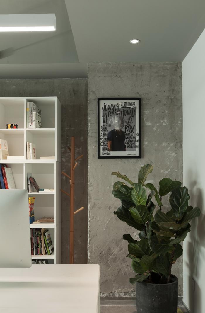 同时保留原建筑的混凝土墙面,差异明显的材质碰撞下形成独特的美感,也极大节省造价开支。