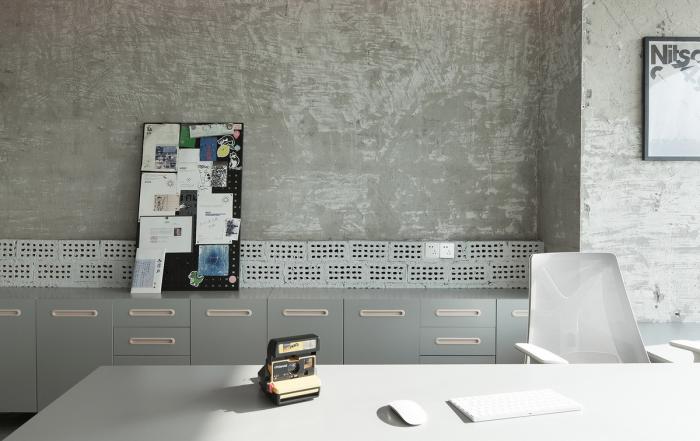 我们采用大量原始粗旷的材料,水泥/超白玻璃/多孔砖等。