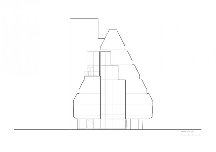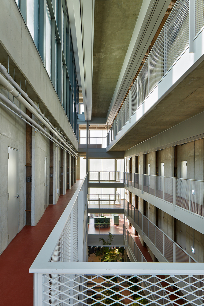 花园的上方是六层楼的居住区。每一层都有不同的单元样式,如处在开放式浴缸上的阁楼卧室公寓、具备猫砂梯子的公寓、适合情侣居住的顶层大空间。最主要的建筑细节则体现在和房间一样宽的倾斜窗户上,从下往上升起的百叶窗在保护隐私的同时也能让人看到外面的天空。