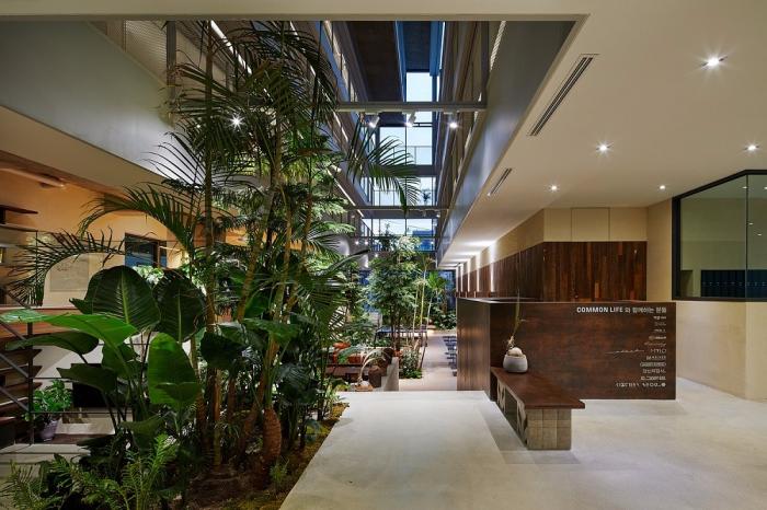坐落在首尔江南区中心的树屋拥有72个住房单元,它是一个共同生活的综合体。大楼内的微型工作室和微型电梯都是为单身专业人士和他们的宠物专门设计的。树屋的中央是一个室内花园,这里还有公共工作空间、休息厅、公用厨房、洗衣室以及宠物洗澡间。
