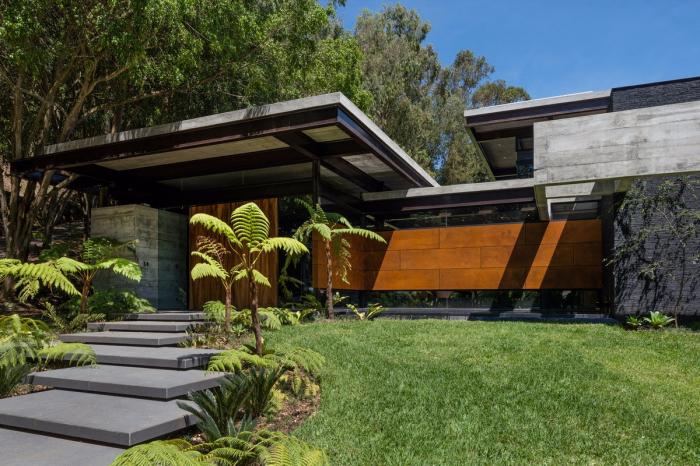 BF之家位于一块特殊的土地上,位于城市中有山的地带,其地形非常平坦。考虑到这种情况,业主想建一栋单层住宅,并最有效地利用花园的优势。为了保留花园,我们决定建一个地下车库。同时为了欣赏花园景观,房子呈“L”形,花园与房子背面相当大的山地空间相邻。