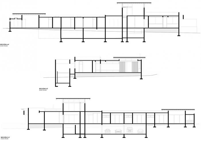 卧室被线性布置在“L”形地长边上,临近末端的主卧。位于另一个平面上的是不常用的家庭房,所有它被排除在有活力的日常生活之外。