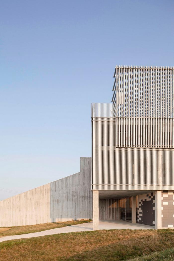 美观大方的混凝土建筑是一个很实用的仓库,斜坡高度和挡土墙的部分都表现出了建筑的一种形式。预制混凝土采用木板成型,带有光滑表面的框架都成为了每个元素的特色。一次单独的统一。