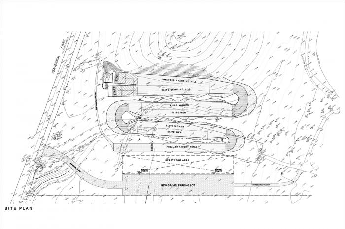 设计团队在确定了赛道场地以后,很快就发现了公园里的一个低点,并且其排水系统占很大面积。建造一个土路赛道需要很好的地下排水系统,不然会影响结构和土木工程的处理。