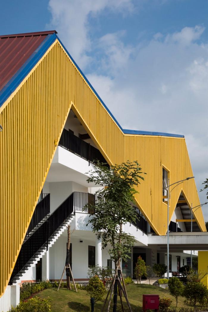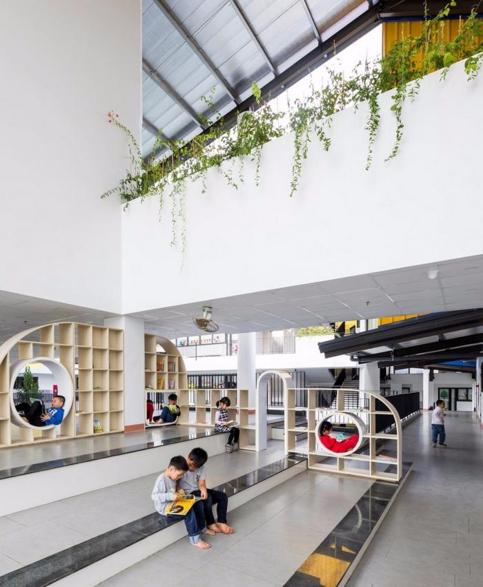 Da Hop幼儿园是位于越南北部山区Hoa Binh省的一所幼儿园,建筑与当地文化、自然和人们友好和谐地融合。整个学校十分富有朝气,有多种有趣的空间。从教室可以俯瞰周围的山脉,学生在上学途中可以自由探索和体验令人惊奇的事物,增长乐趣。