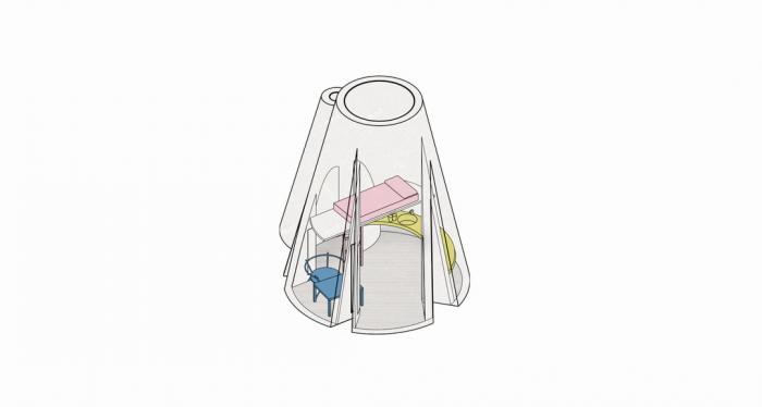 最大的建筑单元是“生活舱”(living pod),它被设计成一个简单的开放式空间:带一个小厨房。