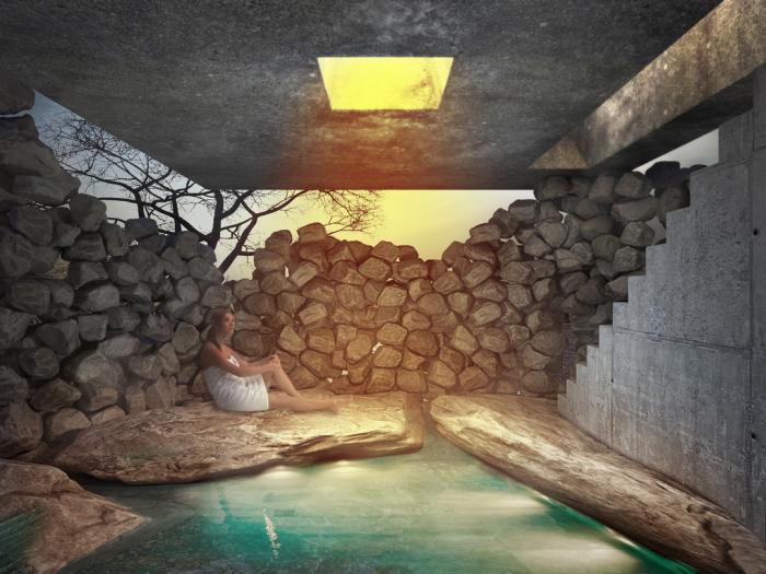 “外部消隐在自然中,内部简洁而空灵”,这是设计希望去诠释的状态,而这句话我把它用一个词来概括,那就是:原始性。