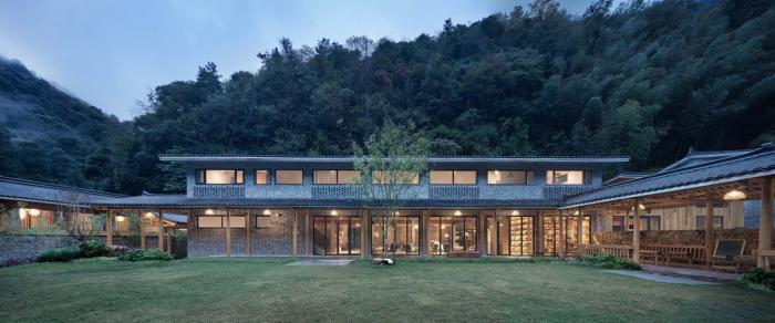 面对自然与传统,设计的宗旨启于对原始地块现状的尊重以及对原有生活方式的关联。依据自然随形赋势,沿袭传统自然村格局,体现无设计的美感,以最本质的建筑面貌来回应由场地位置、功能需求等所带来的一系列基本问题。