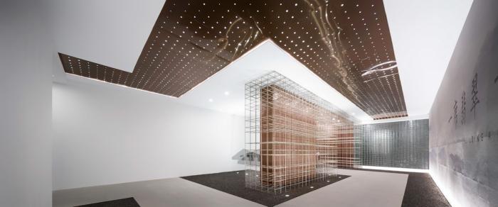 冷峻的金属装置在暖意的灯光映衬下呈现出耀眼的光芒,以精致现代的金属元素结合曲径通幽的传统动线,仿佛将过去与未来相连结,大面积的金属装置表达了现代设计语境下的精致美学,穿行于此,便能感受到传统布局之中的现代礼序感。