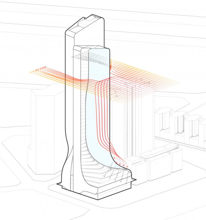 GWP提倡“建筑是一种诗意的栖居,以恰到好处的平衡之美营造独特的建筑形象和空间氛围”。设计团队希望在这个地标高层综合体的设计中本着以人为本的出发点,注重采光,通风,与自然生态景观相融合,引入多层次交互开放空间,在建筑形式与结构美学相得益彰的同时,赋予项目丰富的个性和独特的魅力。
