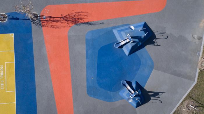 虽然整个幼儿园室外只使用了三种颜色 — 蓝、黄、橙,但强烈的色彩对比和形状冲突,让幼儿园布局显得设计概念感十足。此幼儿园室外的设计更是一场生活态度与艺术的邂逅,用无限想象力创造了一个无尽的空间。透过光影艺术表现对于美的无限幻想和无尽的创造之美。