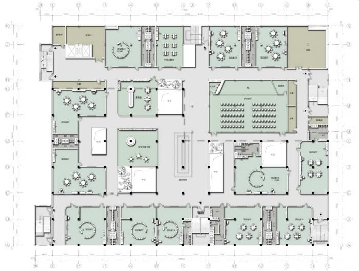 培训楼整体的规划通过设计以大气沉稳又极富层次感的线性设计打造极为吸睛的标志性轮廓,借由这量体分割划分出此空间的功能区域。让步入空间的方式形成递进、转换层次的变化。
