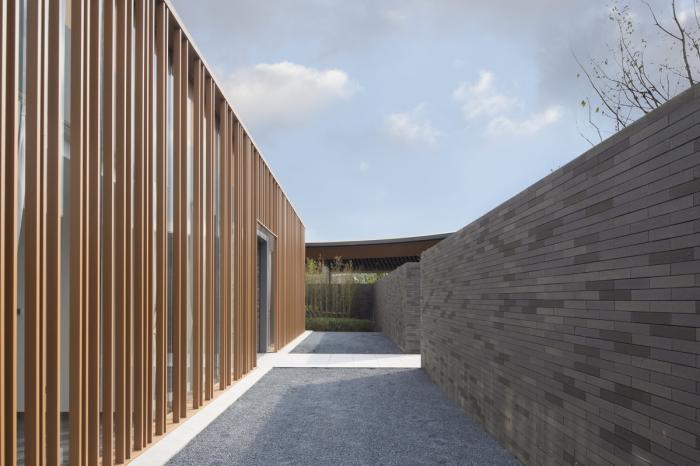 穿过墙院体系的过程中,光影在变化,空间的纵深也在变化。进院的层次越多,空间的每一重体验和阅读维度的叠加越多。在此层面上,设计回应了东方文化中的院落空间。在整个空间体系中,我们基于一种“开敞-压抑-再开敞-再压抑-而后再度开敞"的空间感觉,呈现出室内-室外-半室内的空间序列。这一系列空间结合游走的顺序和体验逐层递进,向游人展现出一幅具有散点透视关系的、与时空交织的“长卷”。