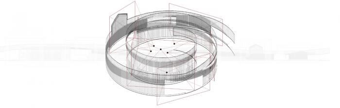 ▲ 空间叙事立面长卷卷曲后的空间图解
