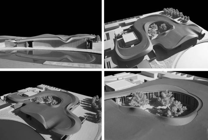 这种透过建筑屋面自外向内及自内向外产生的特殊游移视角,使得屋面与屋面、屋面与周边环境之间产生一种特殊的形式关系。基于这一特殊性,我们将建筑屋面设计为与周边连绵山体呼应的形态。