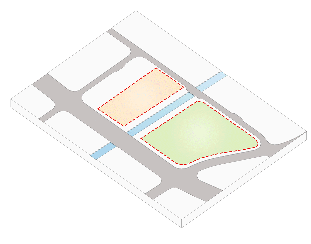 多番比选之后,我们决定因势利导,将规划河道纳入整个校园的自然核心,最大程度地增加校园的自然景观和活动空间。并对原本笔直的河道进行了调整,使其呈现蜿蜒的形态,在均衡河岸两侧用地的同时,留出了可供师生凭栏驻足的港湾,将整个河道及两侧绿带变成校园的中心花园。