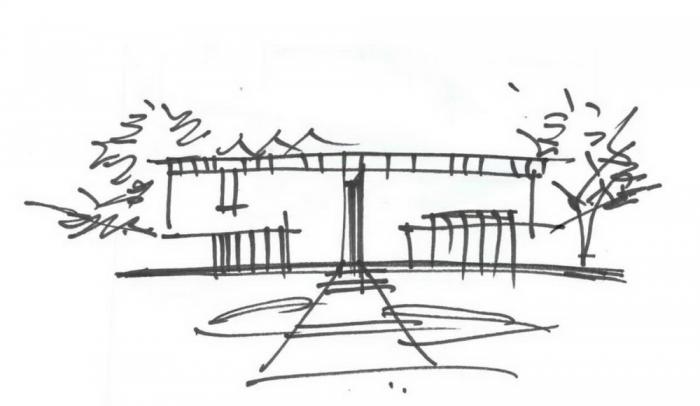 吴冠中的书画作品《双燕》中,跳脱的元素打破均衡的构图,同时也为画面增添了活力。以《双燕》的构图为载体,我们借鉴南京古城墙特有的“龙吐水”现象,所引入的玻璃水幕为南面坚实沉稳的形象增添了生机与灵动。左侧屋顶四个构筑物则是仿照中国传统水墨画消隐的笔法,在打破相对均衡的构图的同时也释放出一种趣味与活力。