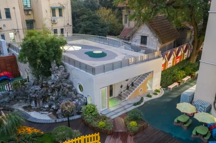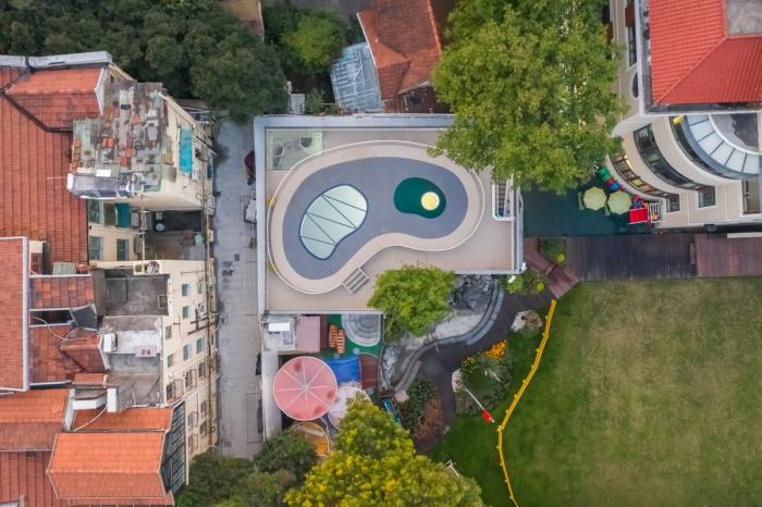 项目位于上海市徐汇区的一座幼儿园内。基地被围合成一个L型,南侧、西侧紧贴围墙,与居住区相邻,东侧为幼儿园内部设施,北侧为内部道路。原始功能为校园的废弃洗衣房。