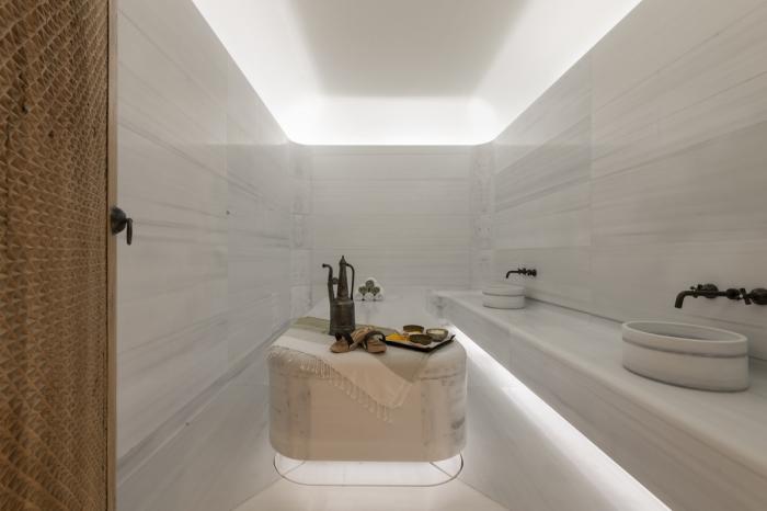 此外,建筑师还在庄园的周边设计了许多可以散发香味的植物,例如百里香、薰衣草以及橄榄树,以给来访者提供丰富的季节性体验。而场地的主入口则直接通向庄园的各个核心区域,包括东侧拥有良好视野的私人空间,以及西侧可以观赏到爱琴海日出的客厅和餐饮空间。