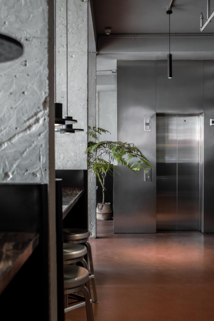 项目共七层,包含负一层和一层的反正餐厅,二层到六层的16间取舍行旅客房。反正建筑事务所依照原建筑的梁柱框架,在秩序界限中实现功能交织,构建具有新鲜活力的都市体验。