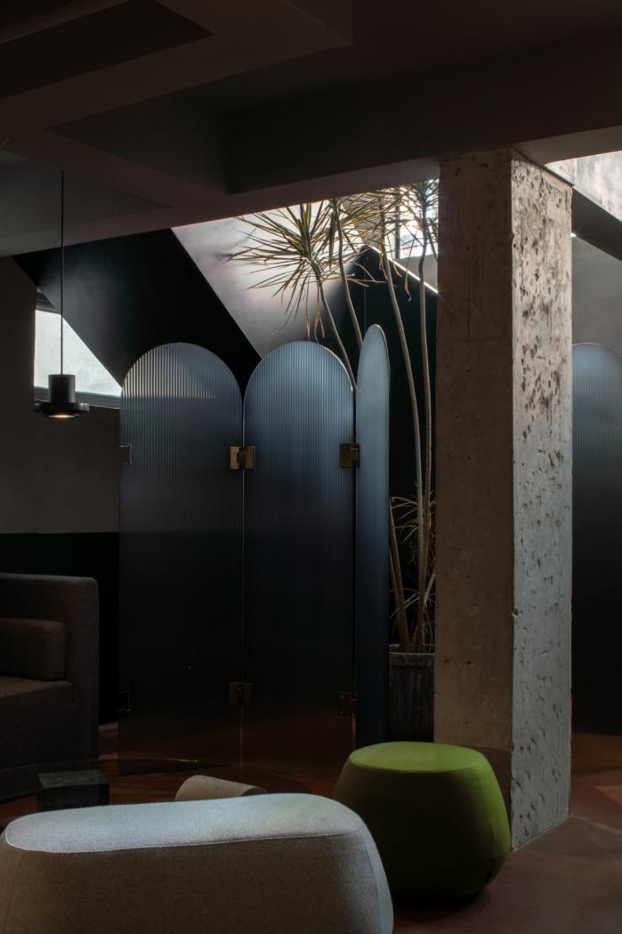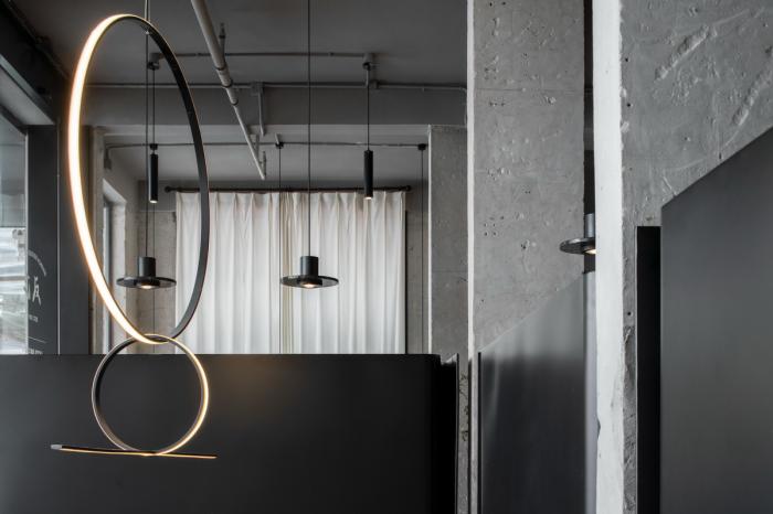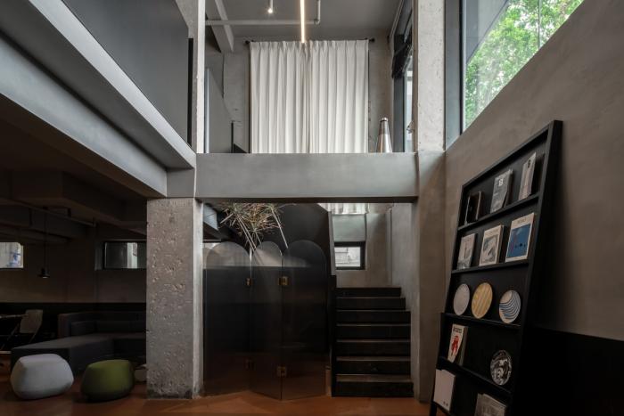 一至六层,明亮而通透的窗外景观和光影游曳的曼妙毫无保留地装进这个空间中。负一层,当点状的灯光氤氲出慵懒的气氛。利用光源营造出两层不同的氛围,满足不同情绪下的场景更换。