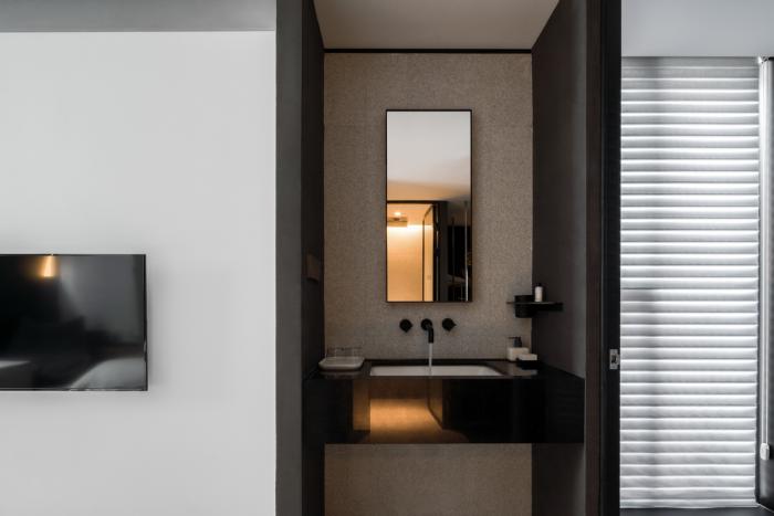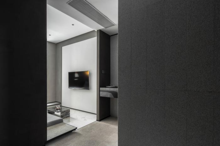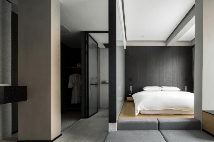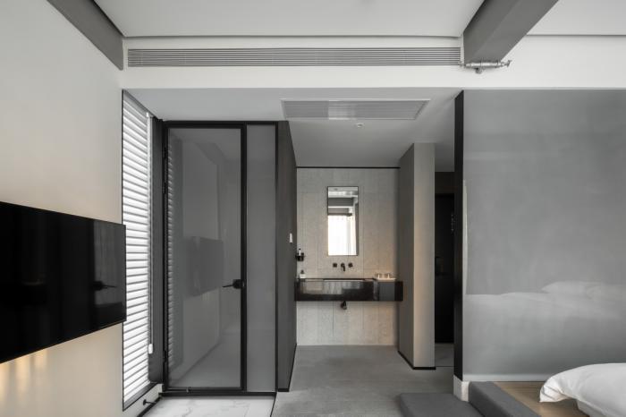 打破住宿固有功能区的分划,将客房内功能分散,以实现将空间最大化利用和体验的优化。客房浴室的淋浴、马桶与洗手台实现了完全独立的“三分离”状态,多人入住时,使用会更加方便,也保证了浴室空间的干爽和整洁。