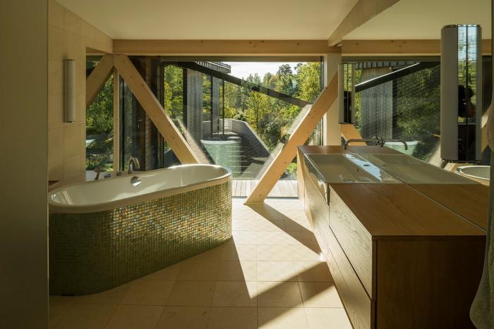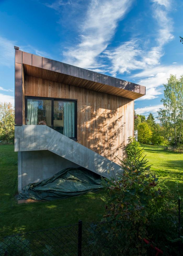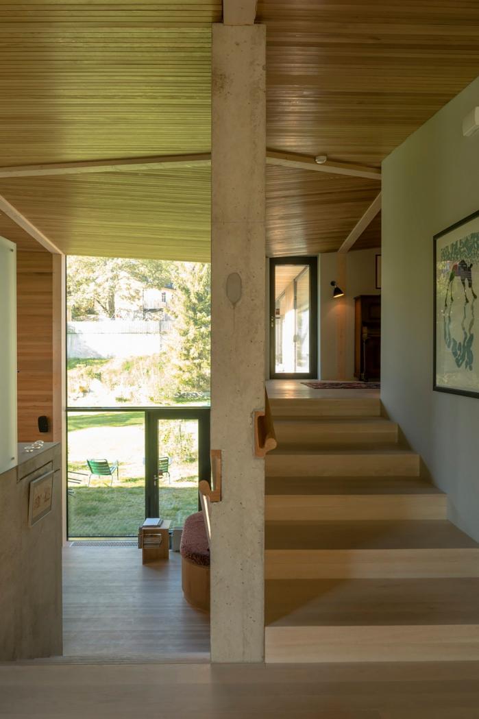 这座占地面积320㎡的L平面住宅位于挪威内索登的伯格,由于业主家庭酷爱楼梯,所以建筑空间有意设计得复杂多样。建筑西南邻接一处阳光花园,同时面对着峡湾和奥斯陆地区的壮丽景观。