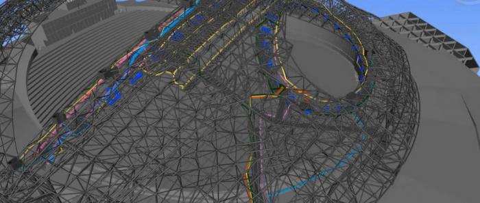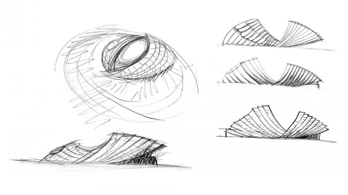在设计过程中,采用BIM技术不断推进,推敲建筑体量、材料与空间之间的关系,同时解决技术层面的问题,为了观众不不受低温、风沙的影响,要求观众席要有屋顶。事实上多媒体设备和演出本身也需要适度的保护,将天气因素和周边公路的噪声和光污染的影响降到最低。围合结构同时可以提供大面积的投影面积,观众将获得更加身临其境,更加丰富的观赏体验。