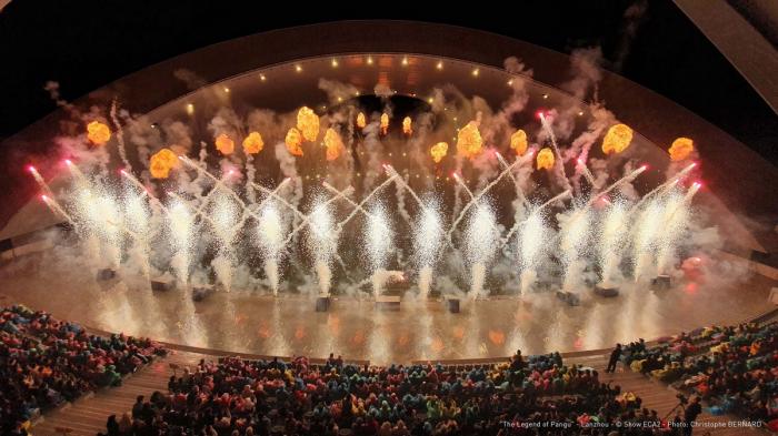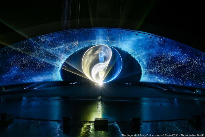 日月馆的演出呈现出壮丽的视觉效果,演出围绕盘古开天地的主题,呈现中国特色的深化传说,演出运用音频、视频、激光、动画、喷泉、火焰、烟花等现代科技技术手段和艺术感染形式,形成集科技、文化、艺术、创意于一体的演出形式,带给观众一场震撼的视听盛宴。