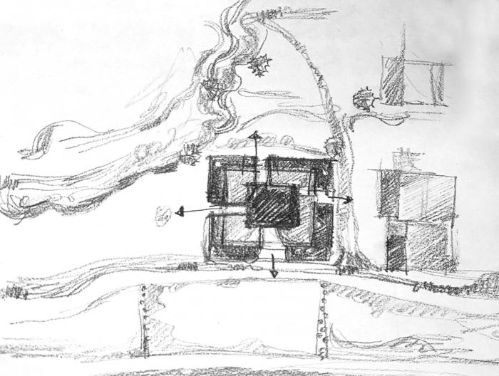 建筑方案的生成源于对设计内容与场地的回应,我们利用当地特有的石材让他们重新回到更重要的位置,尝试创造一座“生长”出来的当代建筑,营造“垂钓坐磐石,水清心亦闲”的场所精神。我们以中国北方传统民居的居住逻辑作为原始模型开始推演,由围合三棵树的院落空间向外延伸,四面合围布置房舍,根据流线与功能划分空间格局,满足餐饮、聚会、住宿等功能需求。“宅中有院,院中有屋,屋中有院,院中有天” ,我们希望这是一个对“精神场所”的探索。