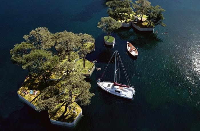 Marshall Blecher & Studio Fokstrot设计的哥本哈根群岛是一个自成一体的生态系统,水面上方生长着本都特有的植被,树木和草地,为睡觉休息和昆虫栖居提供了栖息地。在水面下,固定的锚点为海藻、鱼类和软体动物提供了新的家园。漂浮群岛在这座城市的一角提供了不断变化的、大片的绿地,代表了一种新型气候适应性的城市规划。漂浮的结构具有功能上的内在灵活性,它们使用了可持续和可重复利用的材料。