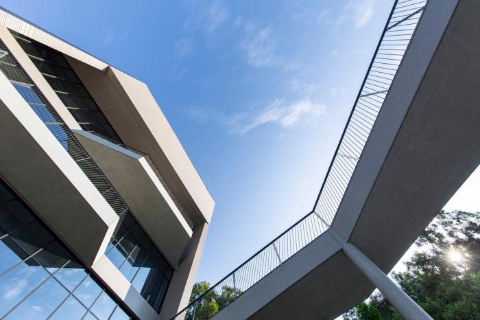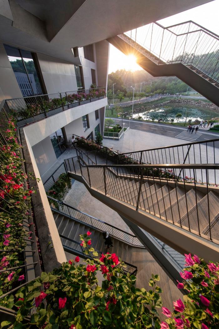 建筑体的连接部位设置为“服务性”功能——入口、卫生间、交通核心以及室外楼梯等,使之成为使用者必经的空间;并采用“立体园林”的方式,引入阳光、绿化及丰富的景观体验,营造良好的公共交流空间。