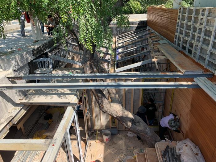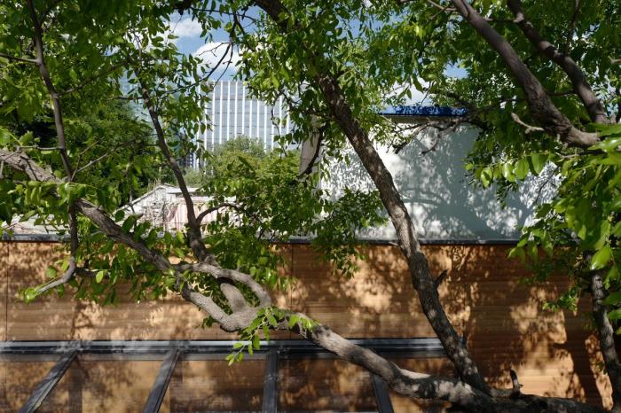 餐厅所处的合院里有一棵逾百年的枣树,被曾经的改造工程围在了室内。考虑到北京传统民居中,树木作为重要的元素,不仅是联系人与场地的纽带,也象征着生命的延续。因此,为了让枣树恢复昔日自然的生长状态,整栋房屋可以自由地呼吸,建筑师开放出一个庭院,并以树为中心重新构建了空间场景序列。