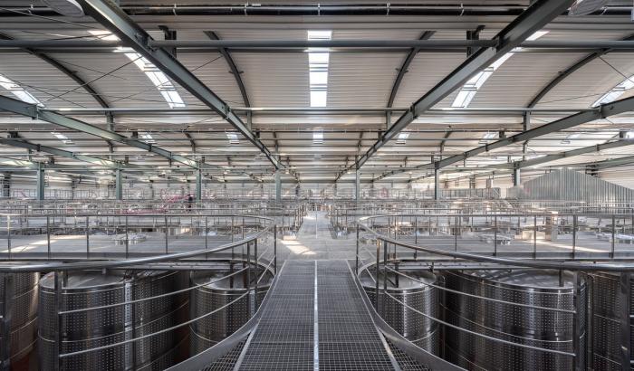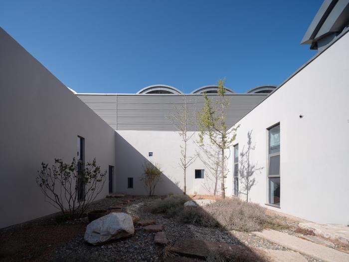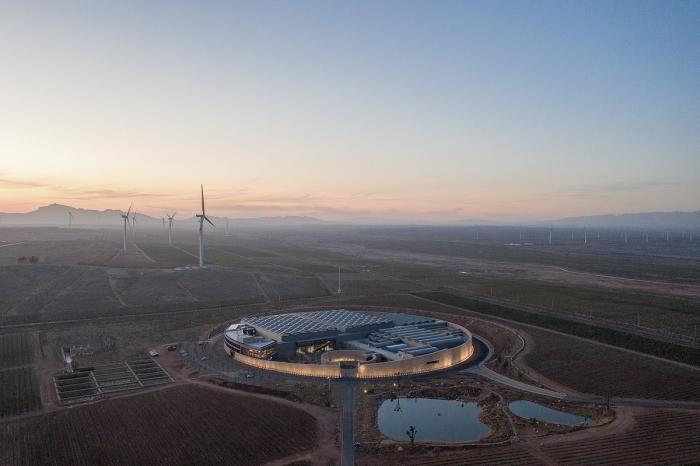 整个酒庄的设计大开大合,有西北的苍茫、雄浑与倔强,也有人文主义的柔软、轻缓与细腻。总体来看,以效率为先的生产区,空间形态上更为冷静、强硬,体现为一种现代性的力量;而以参观休闲为主的其他功能区域,则稍显柔软与从容,体现为一种对自然对万物的感召。