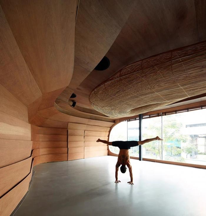 总部位于泰国的设计公司Enter Projects完成了这家位于曼谷的瑜伽品牌的总部。这座照片由Edmund Sumner所拍摄的项目是一个面积达450平方米的空间,内部包括一系列的自由形式的瑜伽舱、休息大厅和卫生间设施。通过与当地手工艺人的合作,设计团队实现了项目的所有元素都采用自然的物质材料,包括泰国硬木,藤条,棕榈叶和本地黑板岩。