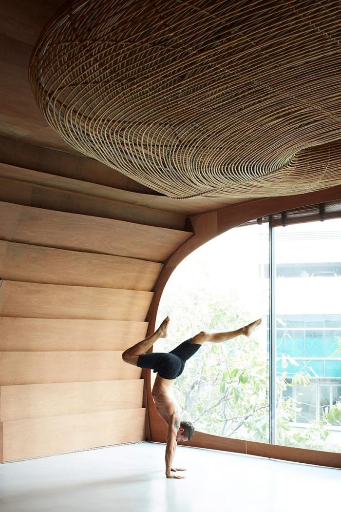 项目将作为瑜伽品牌Vikasa的总部,它是该品牌健康与养生理念的体现。正立面上的落地窗使得自然光线得以洒入室内,同时保障了瑜伽舱的隐私。通过运用特色鲜明的几何元素,Enter Projects将3D技术与本土手工艺相结合,把自然带到了城市环境中。
