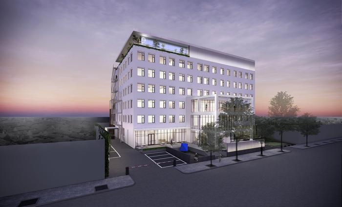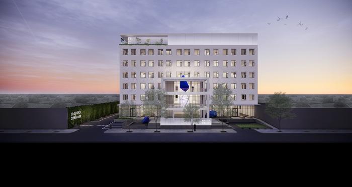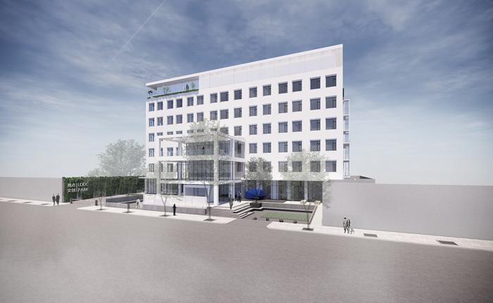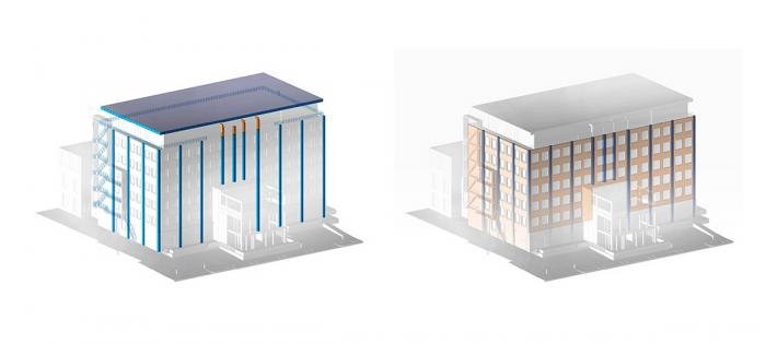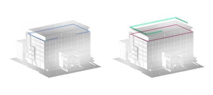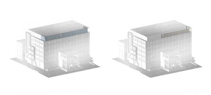 △ 顶层立面替换抛光铝板 / 局部立面增加白色玻璃幕墙