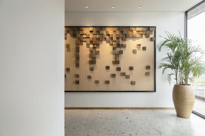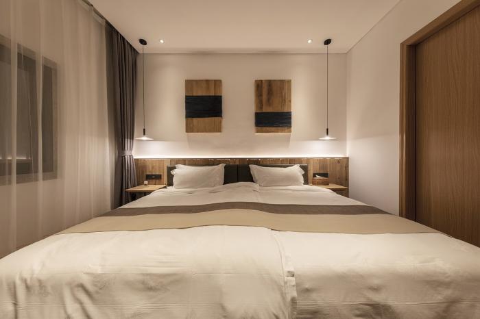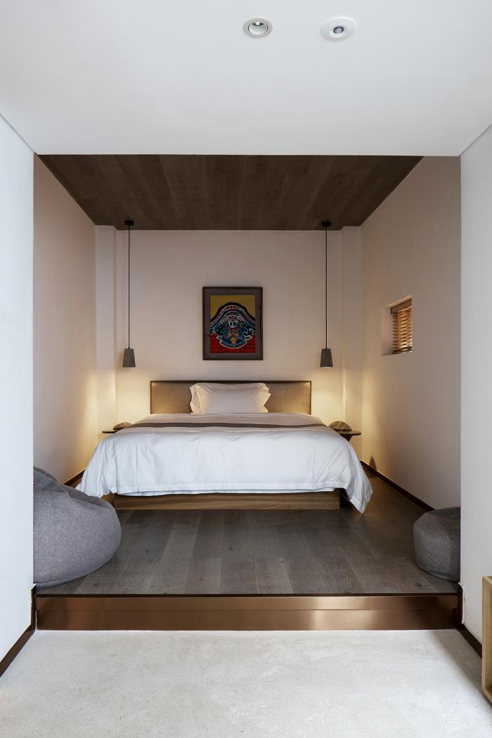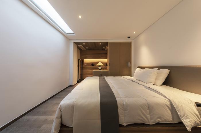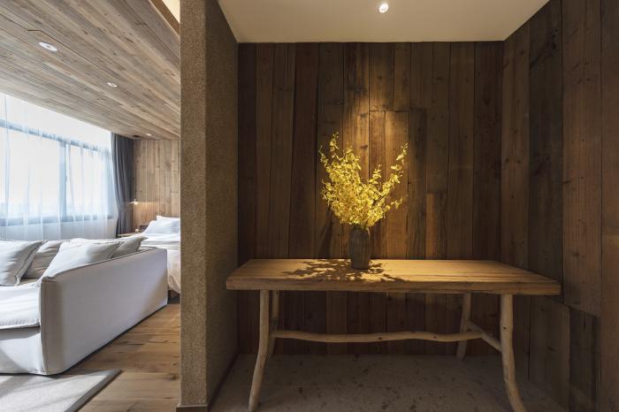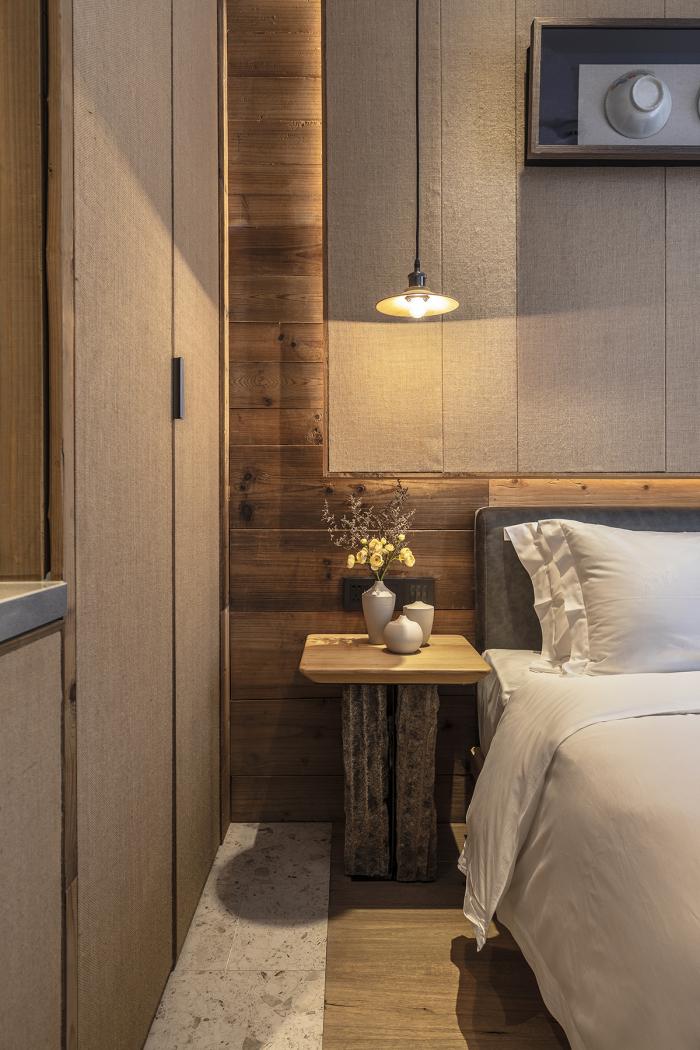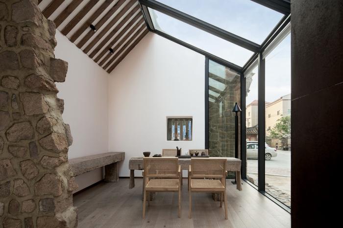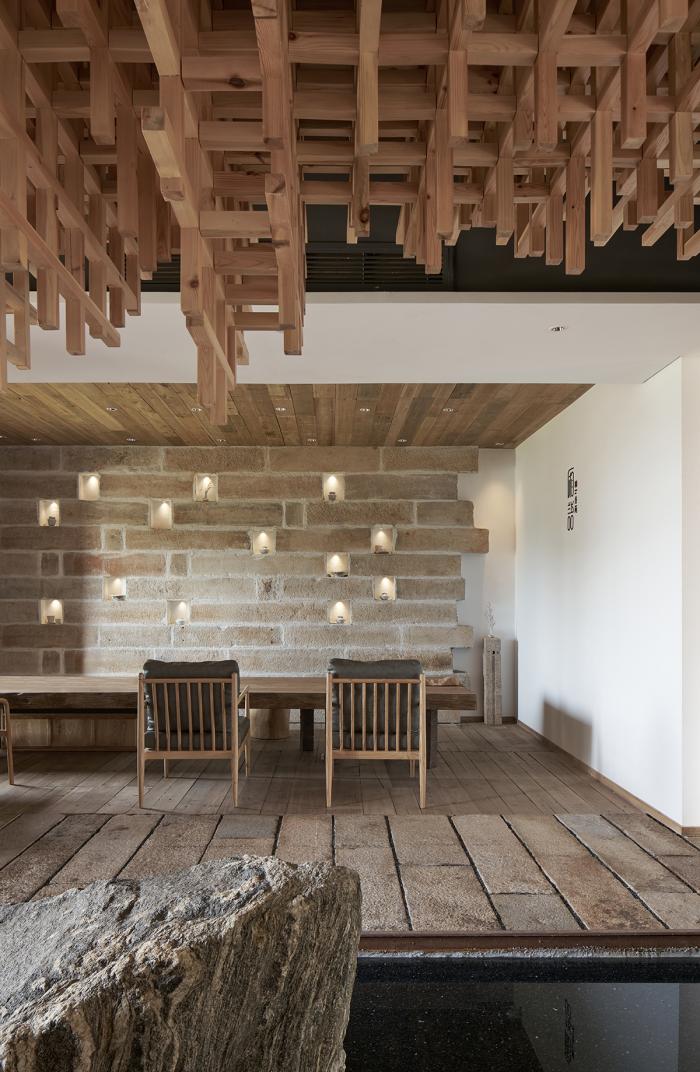 3号楼建筑是以条石和大板石砌筑,设计采用了内套钢结构手法做局部处理和修复,保留最初的感觉,由于石头房子采光不足,采用内置灯光处理以达到家的感觉。三幢古建的室内设计以闽南传承的工艺为主题,打造三栋楼,分别以木、石、瓷为主题植入,增加民俗文化的传承结合。